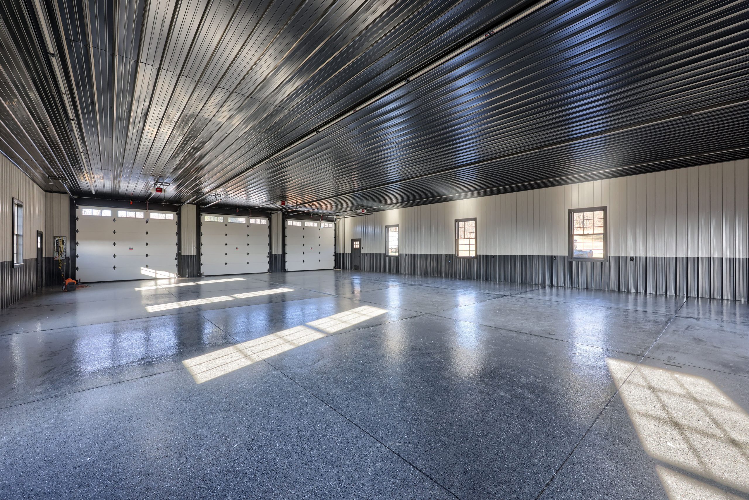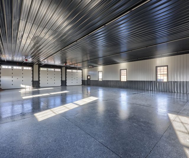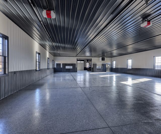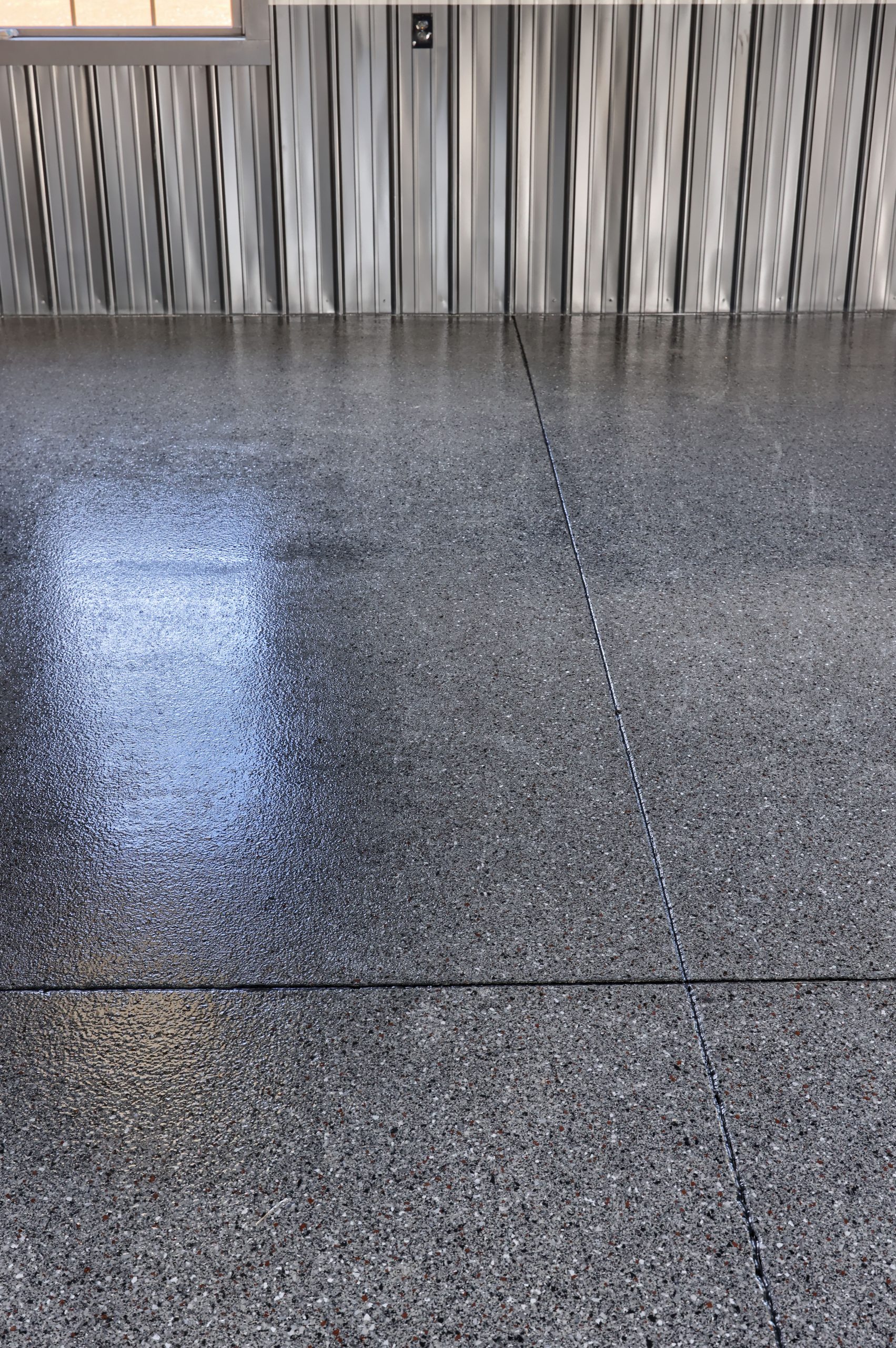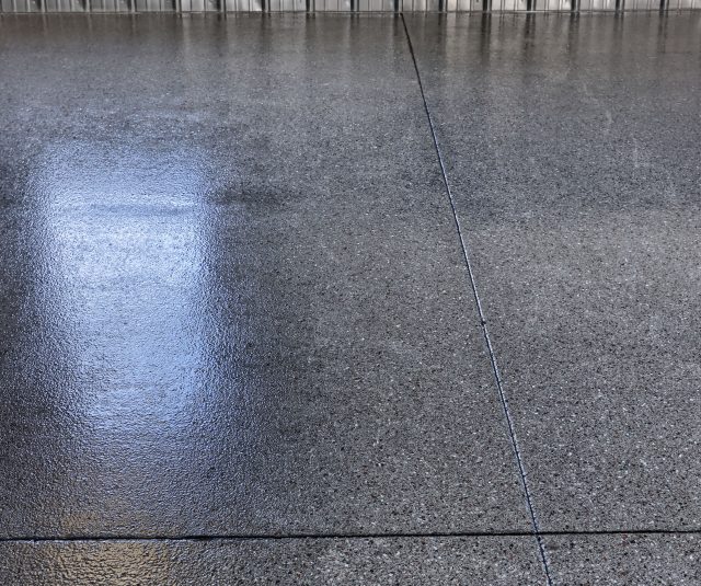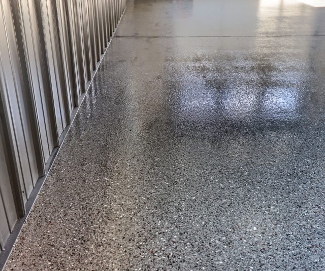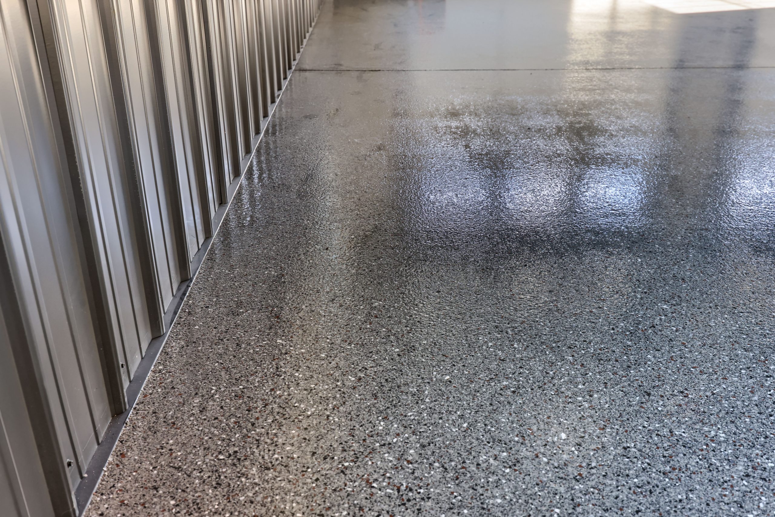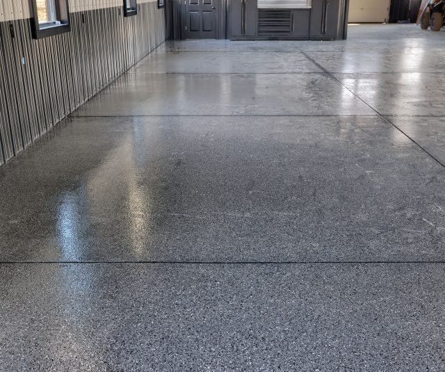 Epoxy chip floor installed in this storage/event building.