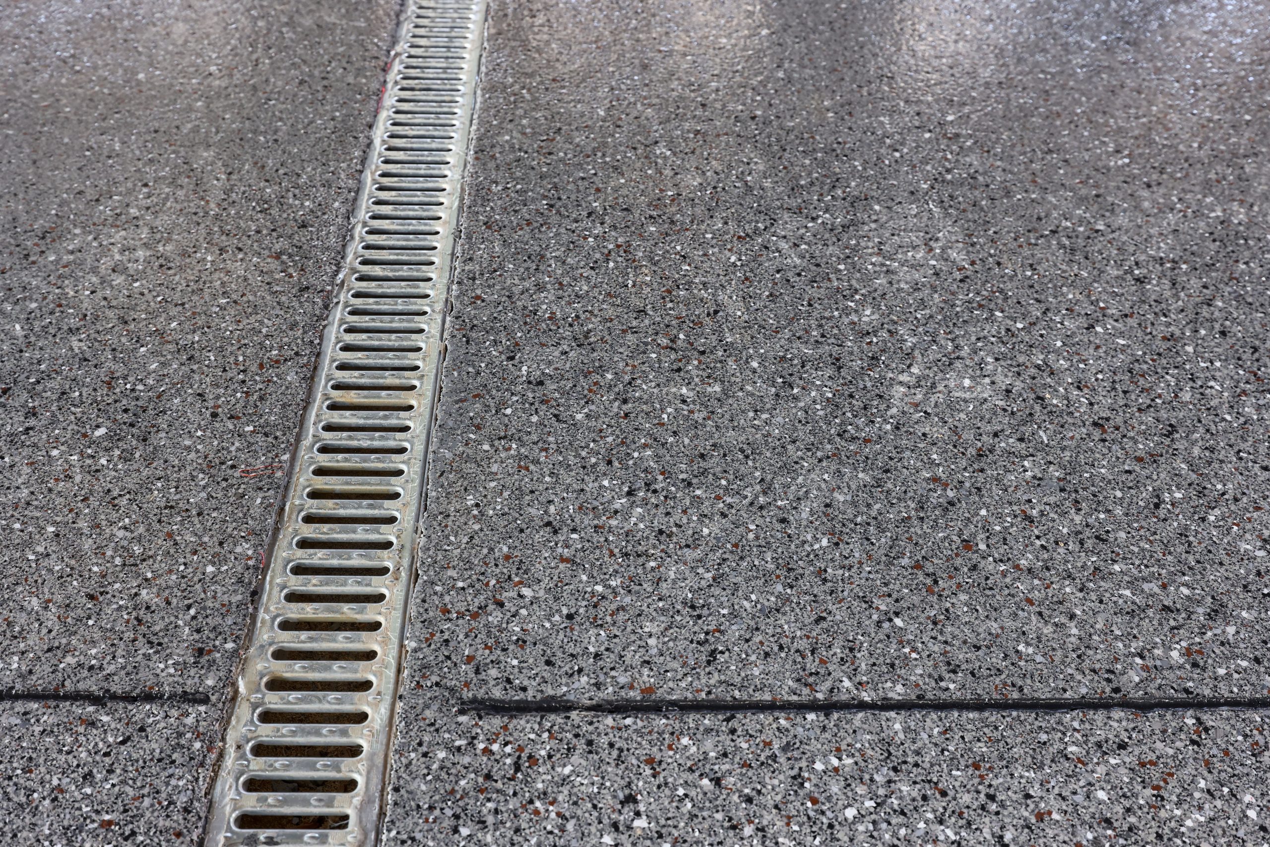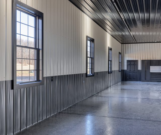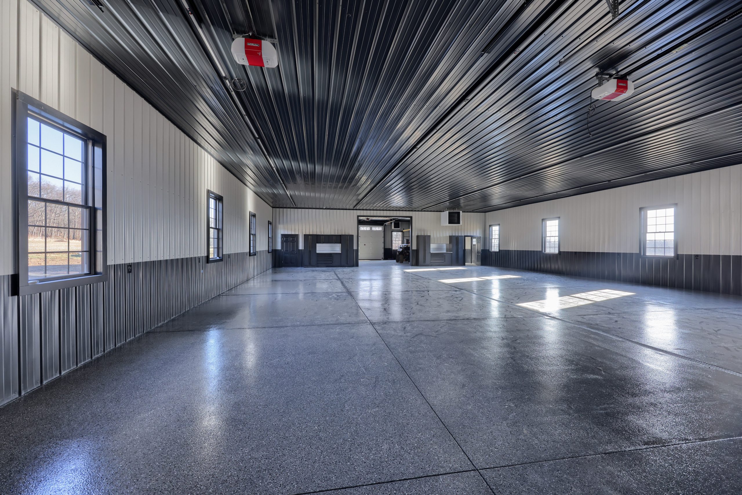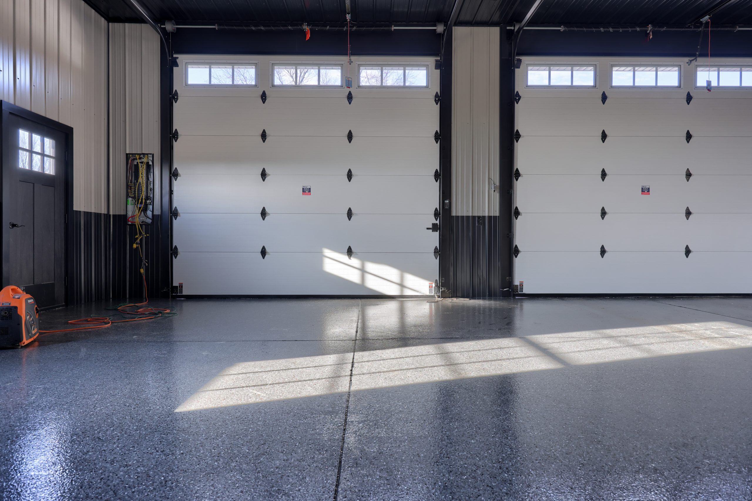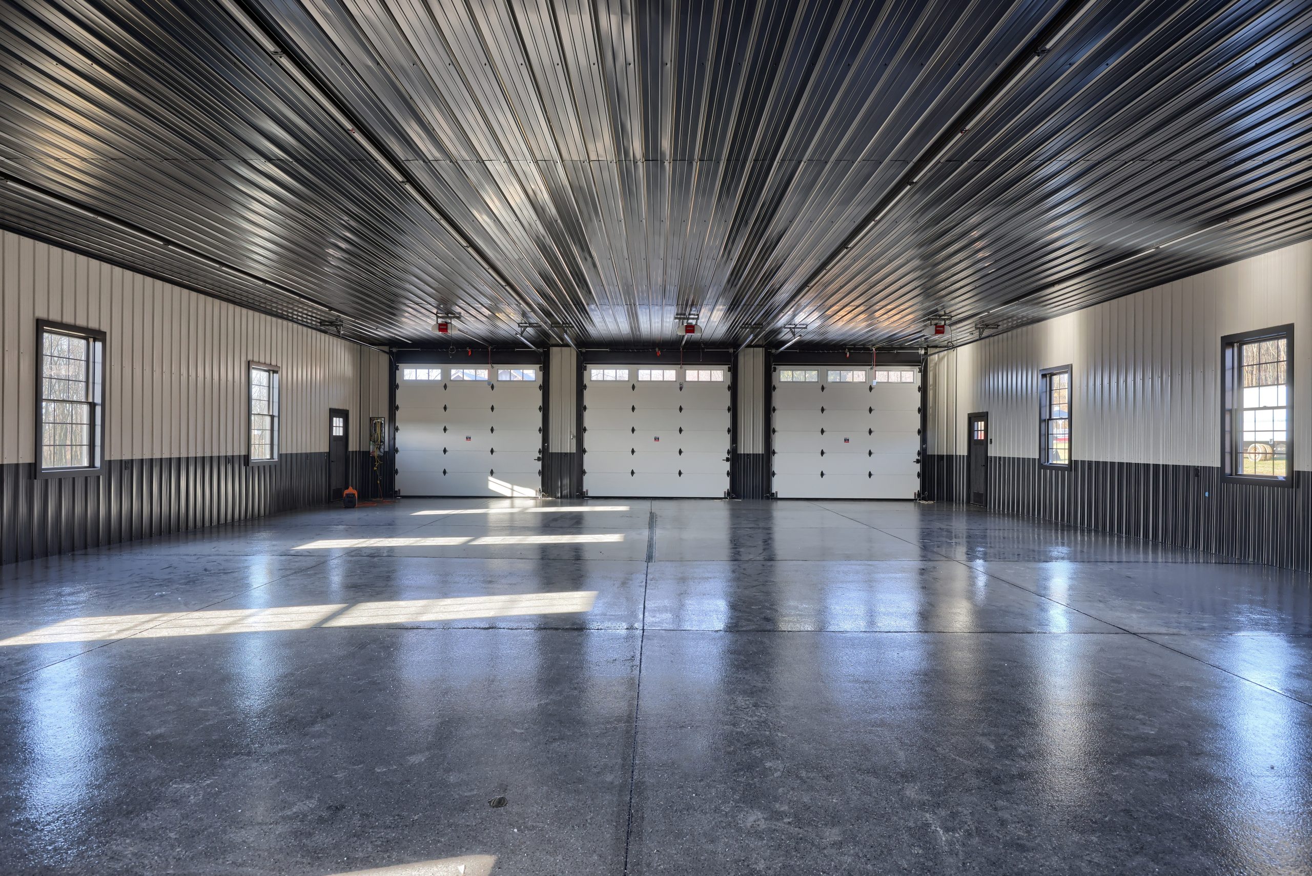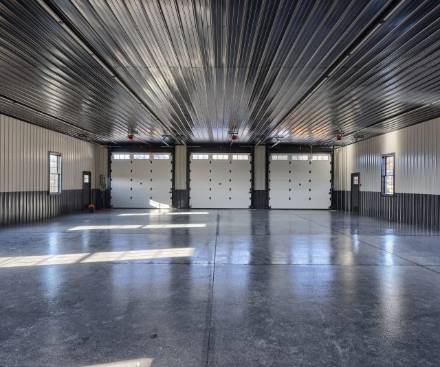 Epoxy chip floor installed in this storage/event building.