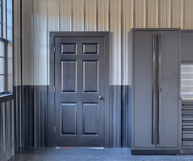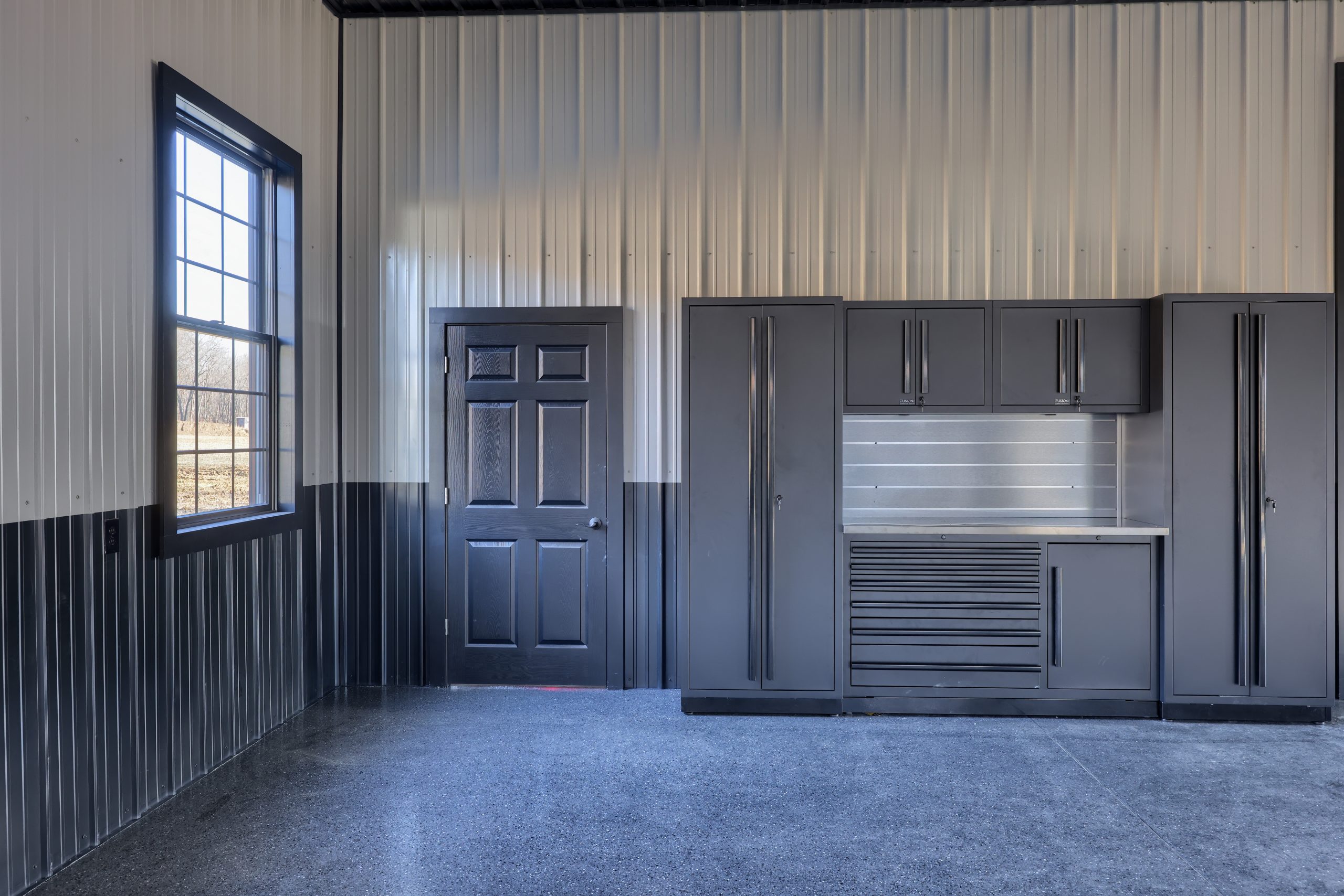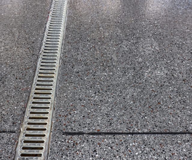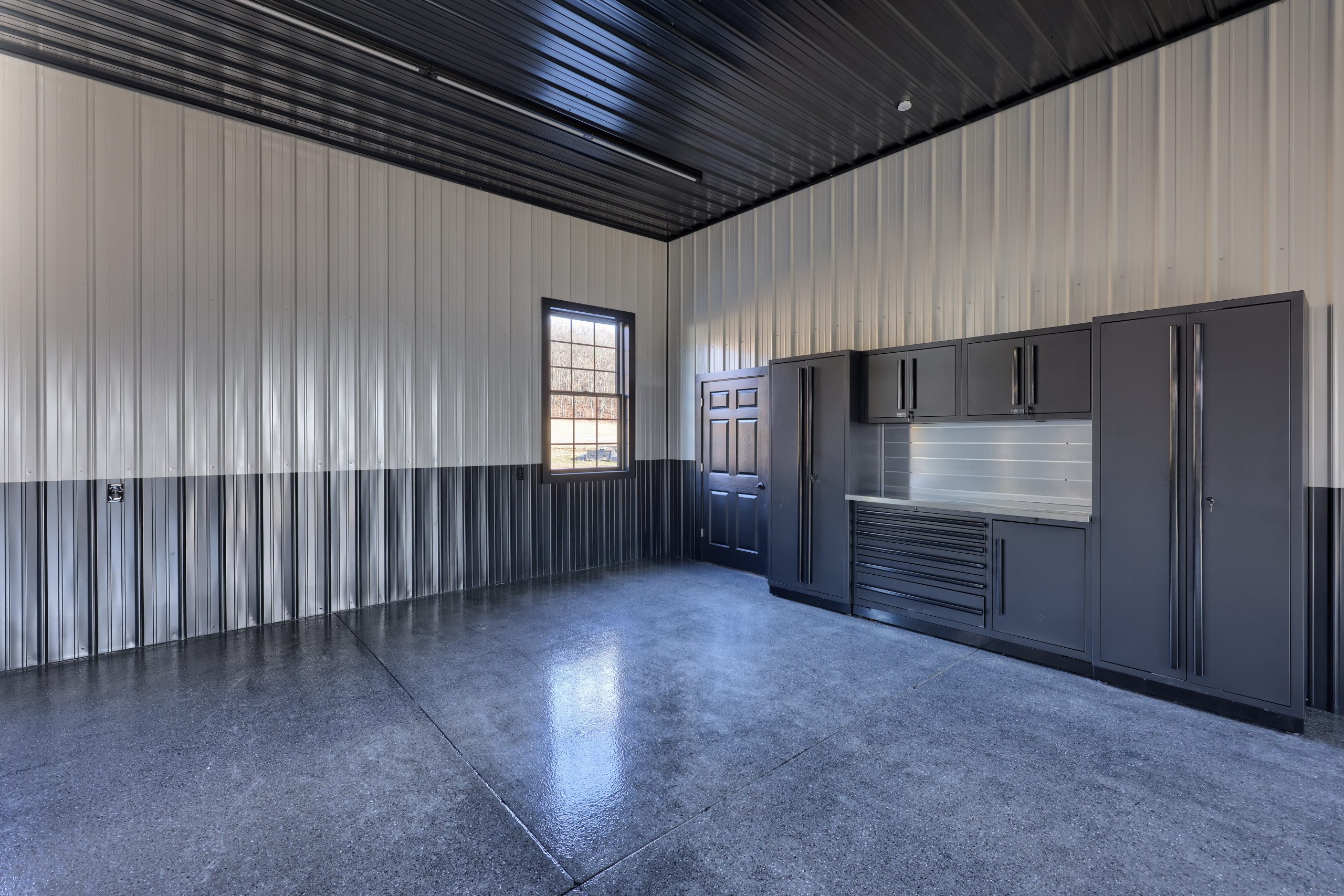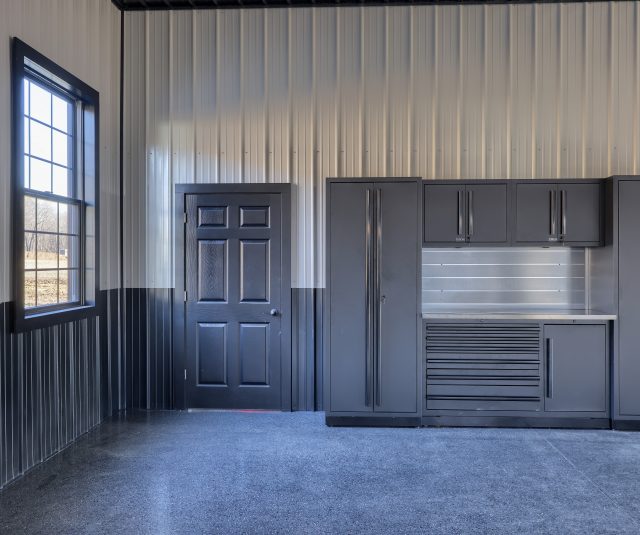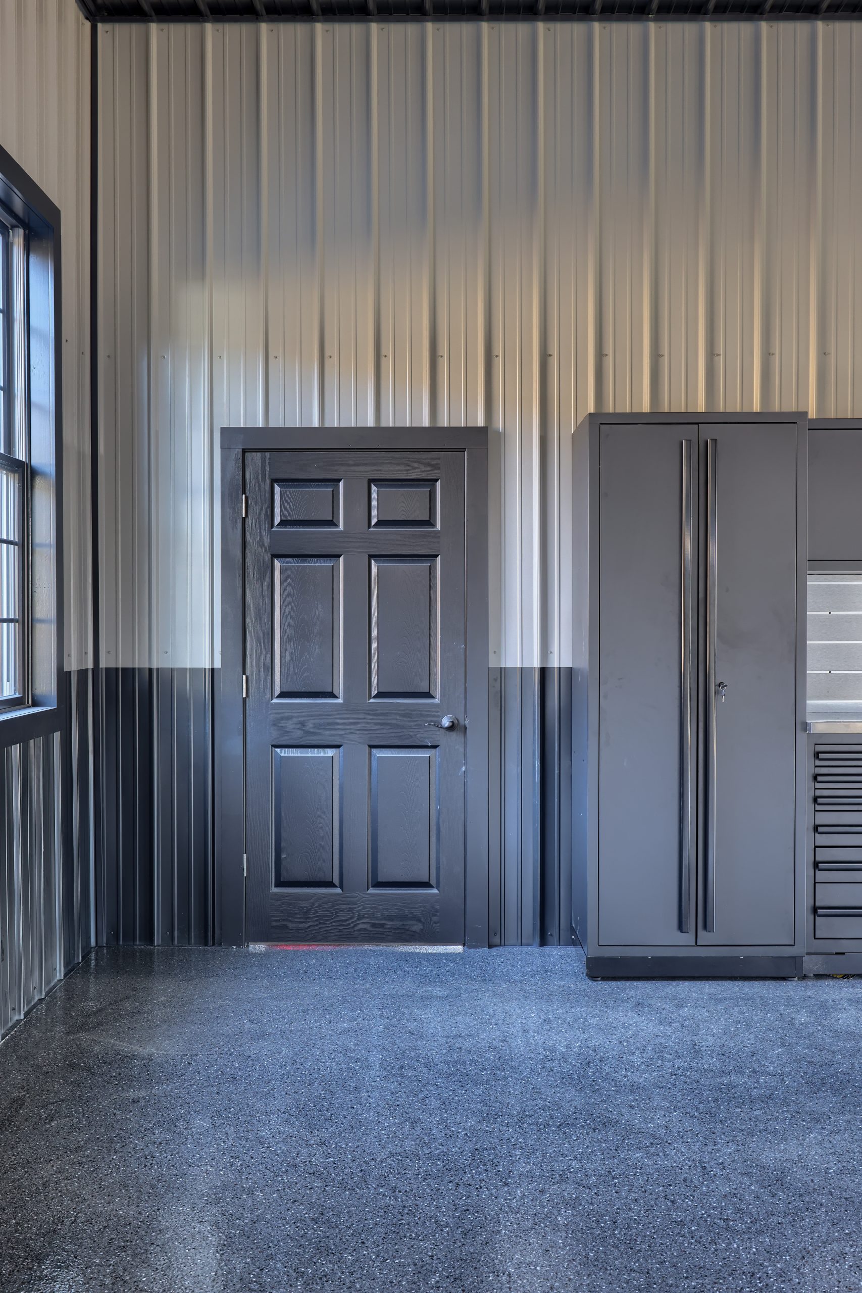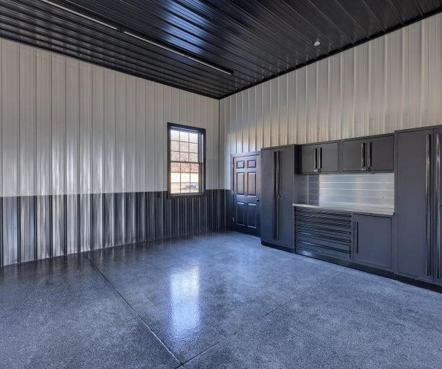 Epoxy chip floor installed in this storage/event building.